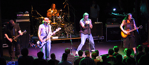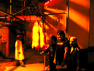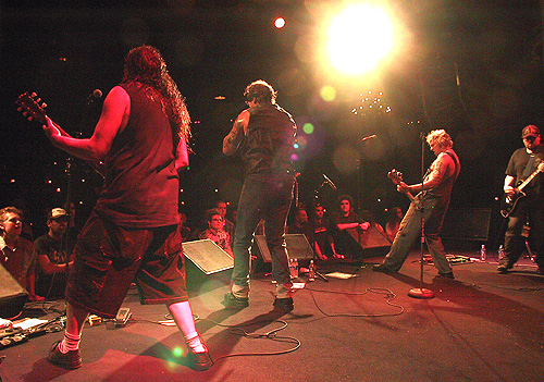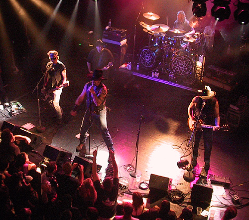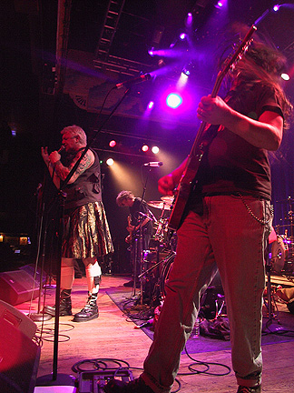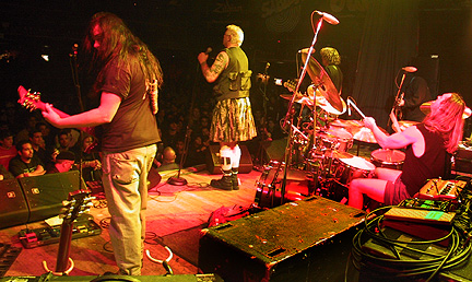 The Power of Beef compels you. The Pigmies left LA for Denver after selling out the Key Club and leaving a huge line of fans outside who could only hope for a glimpse of the big men as they headed off for the coolest tour of the decade with A Perfect Circle. In Denver, with lightning cracking and a dark rain outside, the Pigs slammed their set out to an adoring throng with obviously high musicality. From the get-go, Savage and the Pigs knew this was their night as he and guitar guy Peter Fletcher are both Colorado natives and bassman Shepherd Stevenson lived half his life there. They didn't get too much of a chance to bask in the glory as they were set to leave almost immediately for a long drive to Dallas. ------Forrest Groat